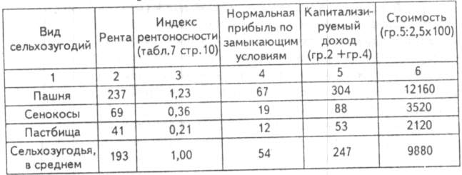 (замыкающих). Поэтому для расчета опенки стоимости сельскохозяйственных угодий