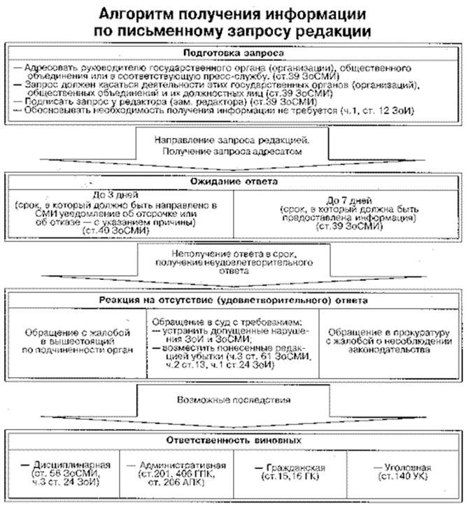 Схема 1. Алгоритм получения информации по письменному запросу редакции.