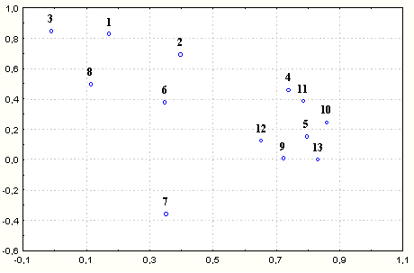 по осям координат) можно сделать вывод, что вся совокупность оценок